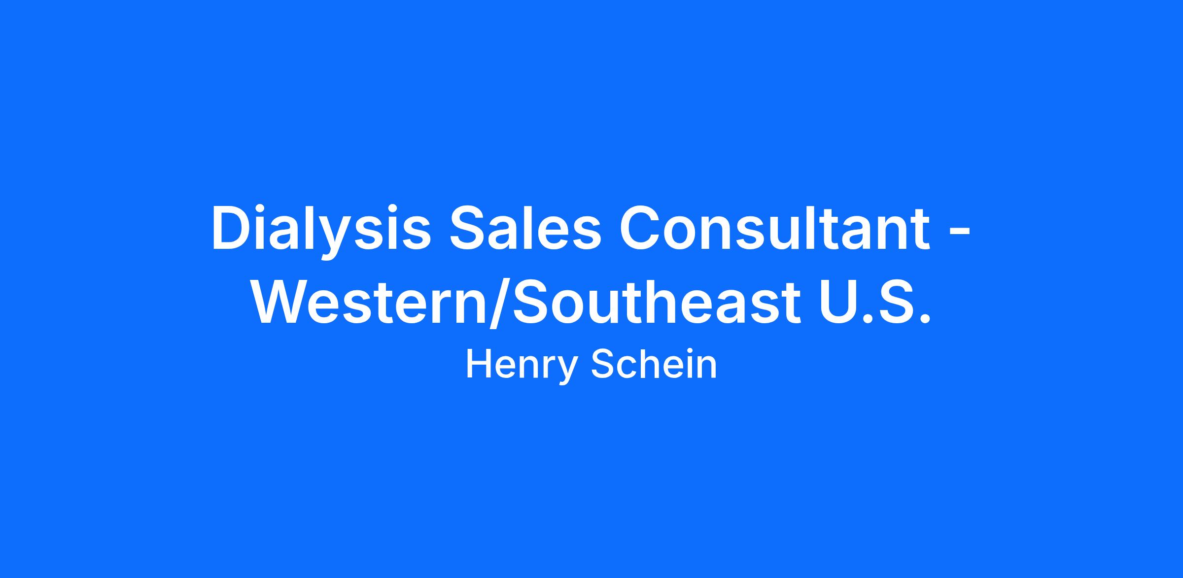 Dialysis Sales Consultant - Western/Southeast U.S.