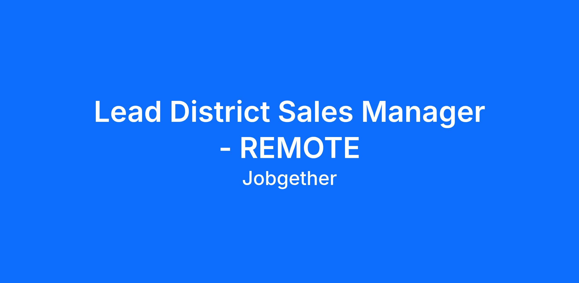 Lead District Sales Manager - REMOTE